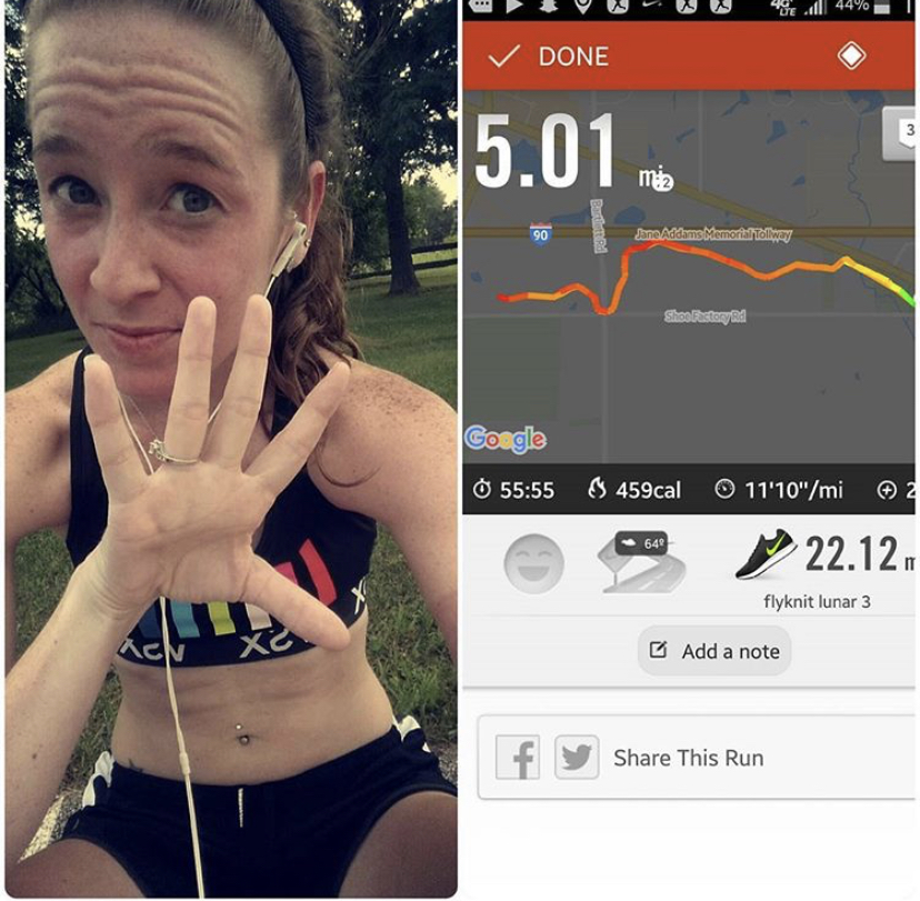 I only made it .23 of a mile before my lungs felt on fire and my legs cramped up. I couldn’t even make it a full quarter of a mile! I vividly remember stopping, gasping for breath with my hands on my knees thinking to myself, “this is PATHETIC”! I looked down at my phone and realized that I had only been running for 3 minutes. THREE MINUTES…. After what seemed like forever but in reality was probably only a few minutes of catching my breath, I picked myself up and limped home in defeat. My plan definitely worked, the absolute last thing on my mind was a cigarette. Sitting on my patio at home I decided that I was going to make a goal of running a full 5k.